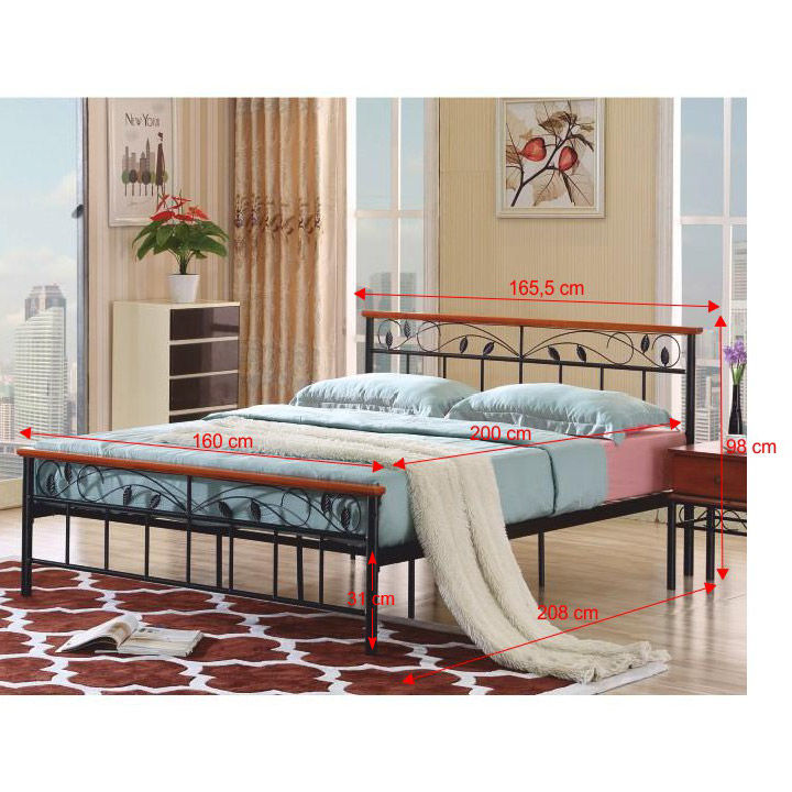 Plocha lôžka: 90x200, 160x200 cmMateriál: kov+drevoFarebné prevedenie: čierna/čerešňaCelkové rozmery na obrázku